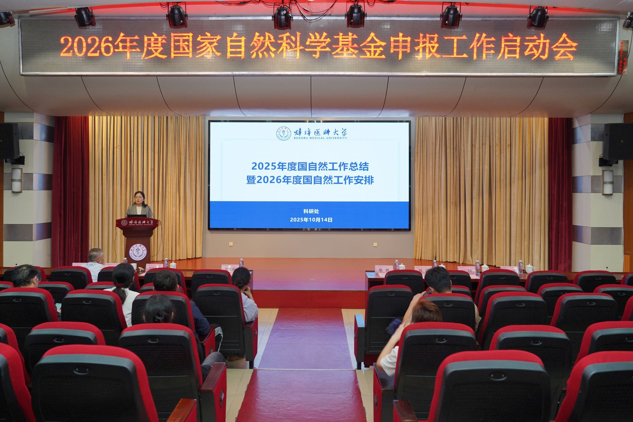 科研处副处长韦莉对学校2025年国家自然科学基金申报工作进行了全面总结,重点分析了2025年度国自然集中受理情况及存在的问题与不足,并对2026年度基金申报工作进行了详细部署,明确了指标任务、时间节点及具体工作要求。
